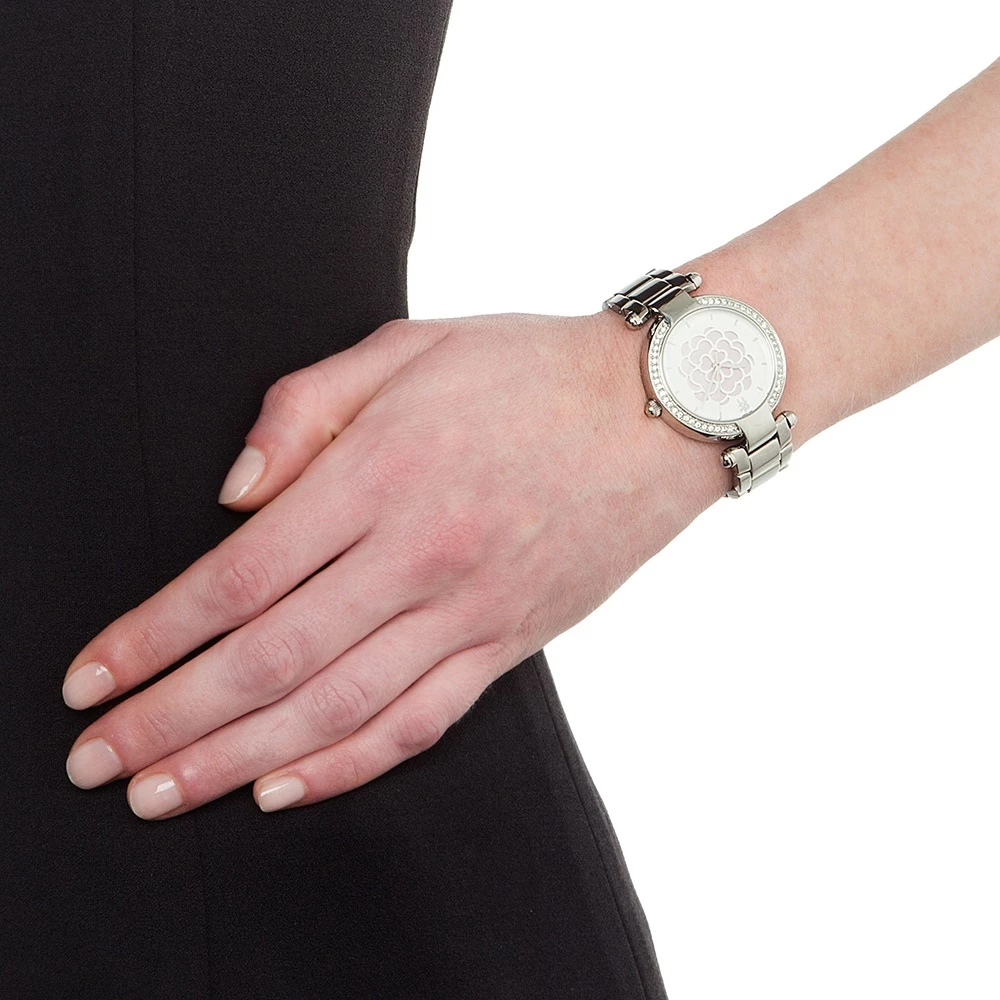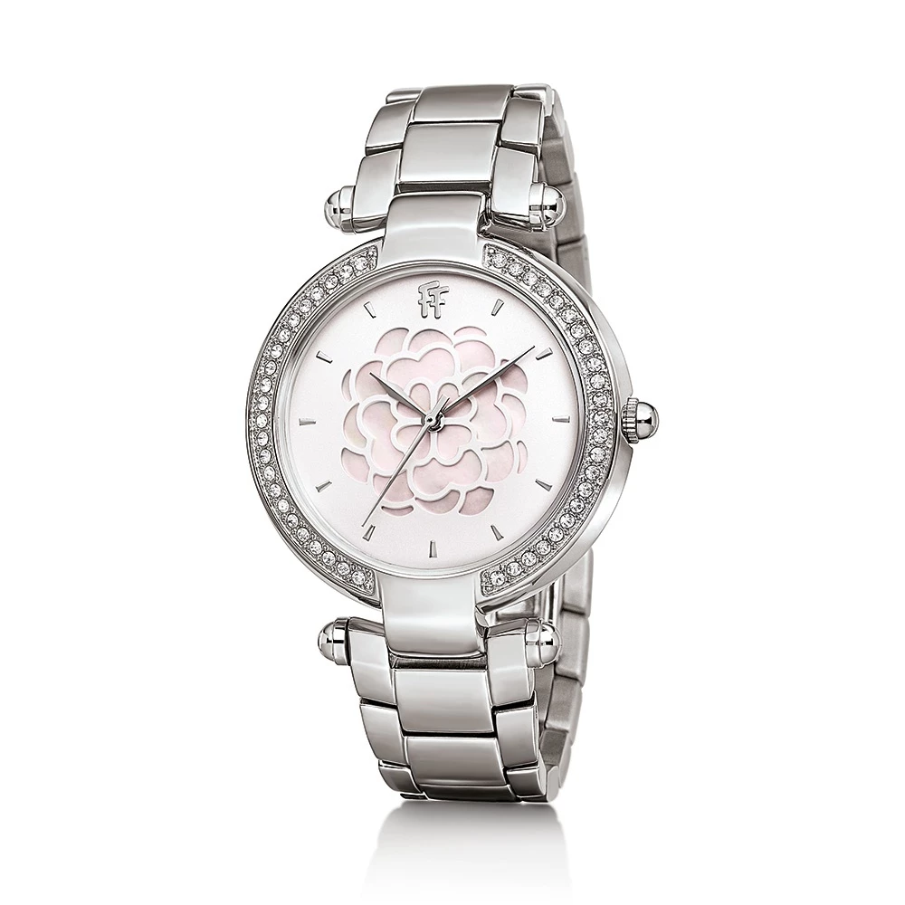 Γυναικείο ρολόι FOLLI FOLLIE από την συλλογή SANTORINI FLOWER. Με μπρασελέ από ανοξείδωτο αστάλι και στρογγυλή κάσα με διακοσμητικές λευκές κρυστάλλινες πέτρες. Λευκό καντράν με μοτίβο το λουλούδι της Σαντορίνης σε ροζ απόχρωση. Ένα κομψό ρολόι που θα δώσει στιλ και λάμψη σε όλες τις εμφανίσεις σας.