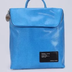 Γυναικείο σακίδιο πλάτης KENDALL + KYLIE σε μπλε απόχρωση. Από οικολογικό ανάγλυφο δέρμα, με μία θήκη που κλείνει με φερμουάρ. Ρυθμιζόμενοι ιμάντες πλάτης και χειρολαβή στο επάνω μέρος.
