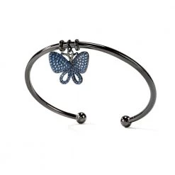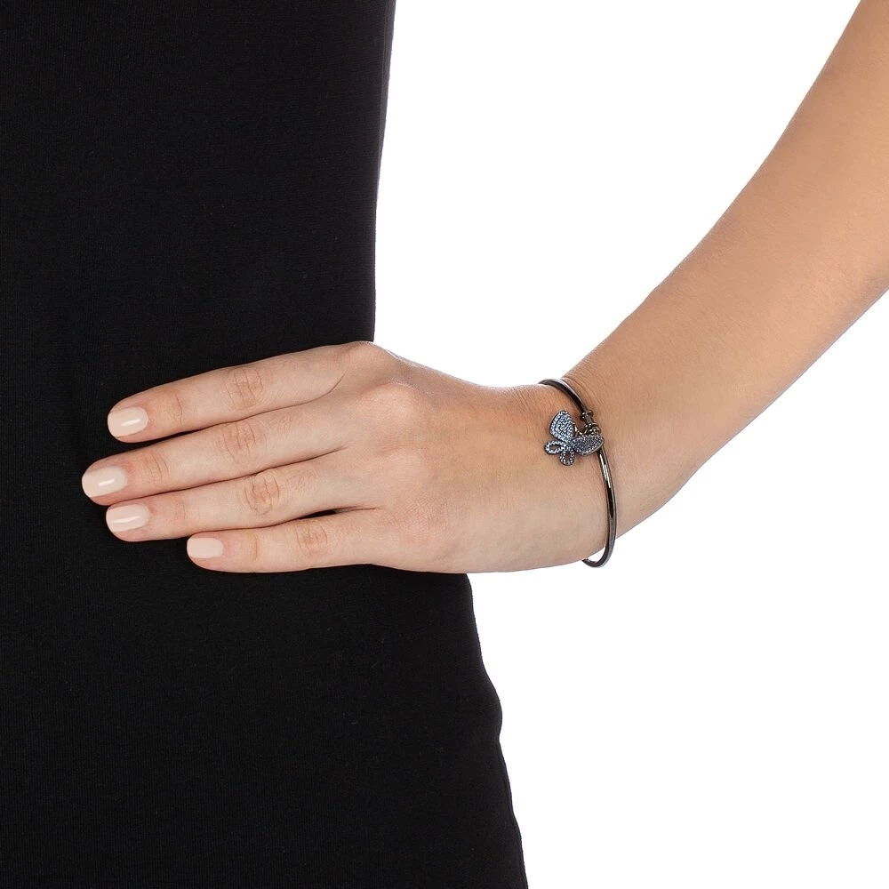 Γυναικείο σταθερό βραχιόλι FOLLI FOLLIE της συλλογής Wonderfly από μαύρο επιμεταλλωμένο ασήμι 925°. Λεπτή βέργα, με κρεμαστό motif πεταλούδα διακοσμημένο με μπλε κρυστάλλινες πέτρες. Συνδύασε το και με άλλα σταθερά βραχιόλια για ένα εντυπωσιακό αποτέλεσμα.