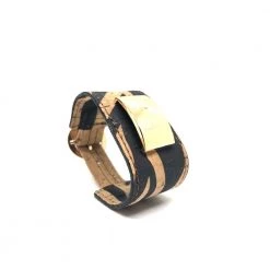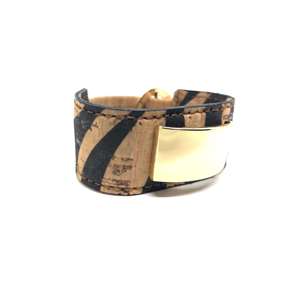 Γυναικείο βραχιόλι APOXYLO σε μπεζ και μαύρη απόχρωση. Κατασκευασμένο από φυσικό φελλό με μοτίβο zebra. Αυξομειούμενο μέγεθος και επίχρυσες μεταλλικές λεπτομέρειες. Συνοδεύεται από χειροποίητο κουτί Apoxylo.