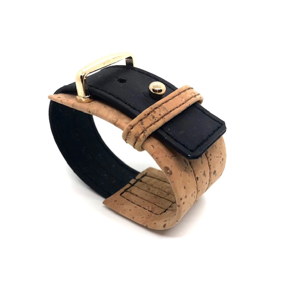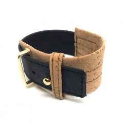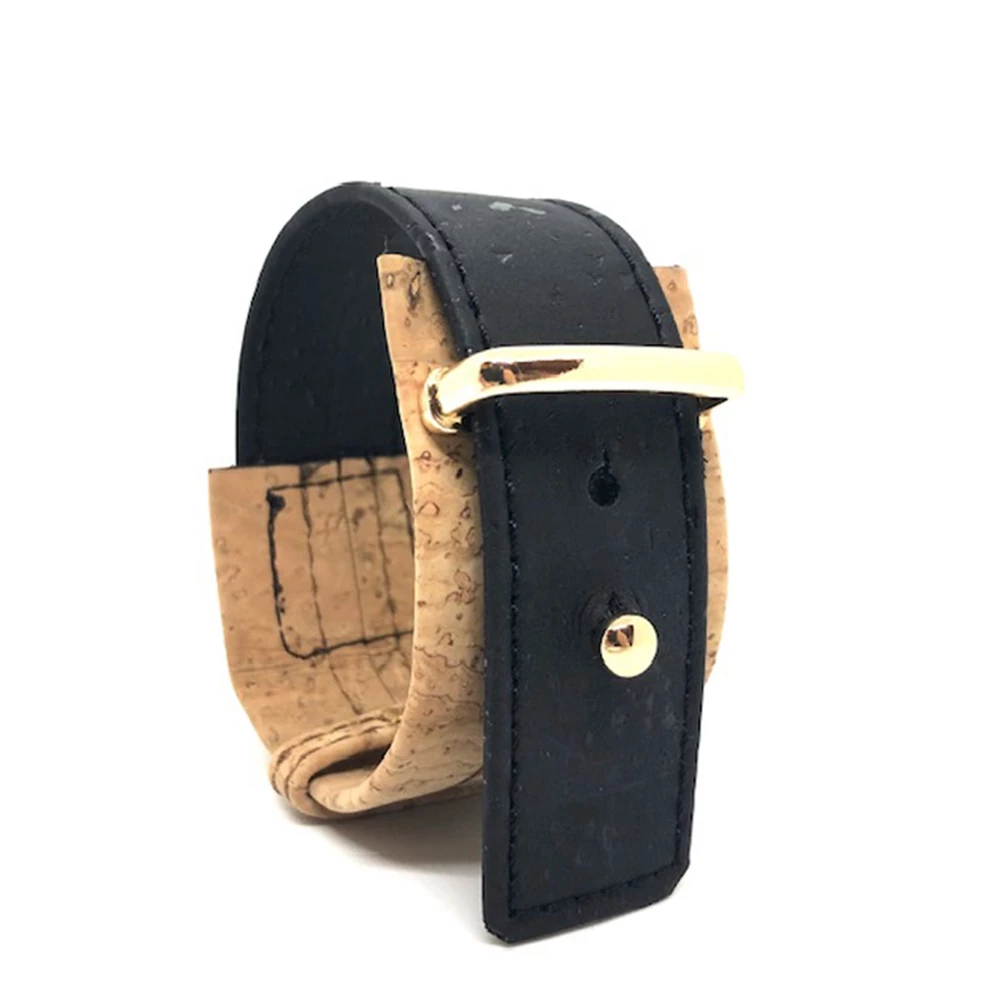 Γυναικείο βραχιόλι APOXYLO σε εκρού και μαύρο χρώμα. Κατασκευασμένο από φυσικό φελλό, με αυξομειούμενο μέγεθος και επίχρυσα μεταλλικά στοιχεία. Συνοδεύεται από χειροποίητο κουτί Apoxylo.