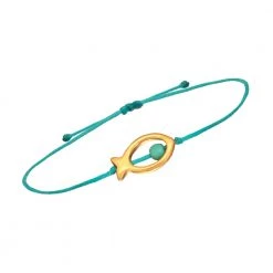 Γυναικείο βραχιόλι JEWELTUDE κηροκλωστή με ορειχάλκινο επίχρυσο περίγραμμα Ψαράκι. Το φίνο σύνολο συμπληρώνει εσωτερικά μια Τιρκουάζ πέτρα να χαρίζει λεπτομέρεια. Ενα αγαπημένο καλοκαιρινό σύμβολο πρωταγωνιστεί σε ενα casual chic κόσμημα. Ενω το κομψό του μέγεθος είναι ιδανικό για να το συνδυάσετε με άλλα και να μην το αποχωριστείτε λεπτό. Προτείνουμε να το χαρίσετε και ως ενα προσωπικό δώρο με προσιτή τιμή και ταξιδιάρικο νόημα. Διαθέτει macrame πλέξη κούμπωμα για να το προσαρμόσετε απόλυτα στον καρπό σας.