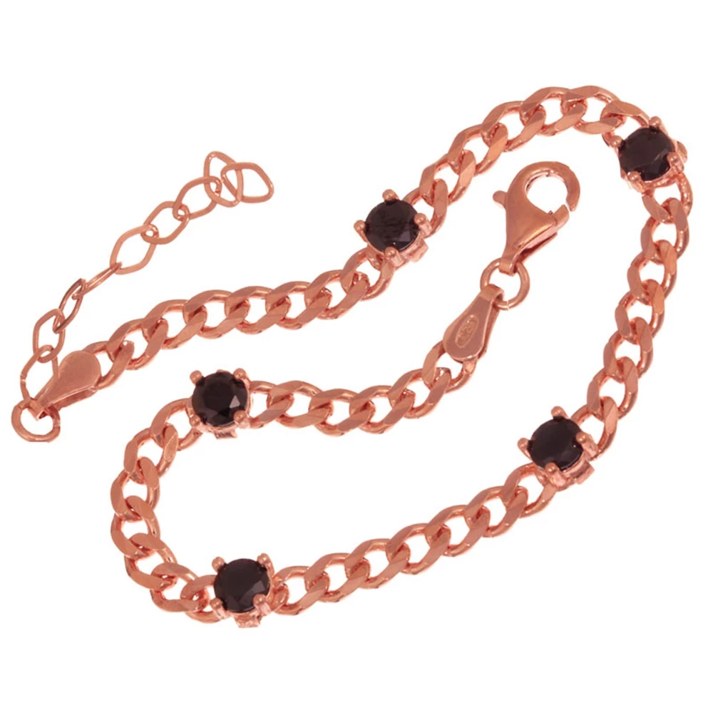 Γυναικείο βραχιόλι JEWELTUDE από ροζ επιχρυσωμένο ασήμι, με μαύρες πέτρες ζιργκόν. Η αλυσίδα διαθέτει προέκταση και κούμπωμα γαντζάκι.