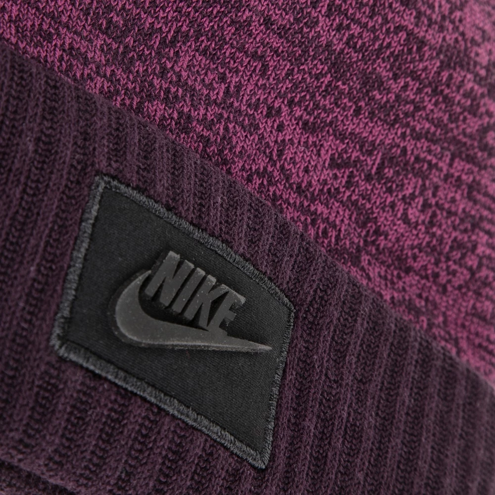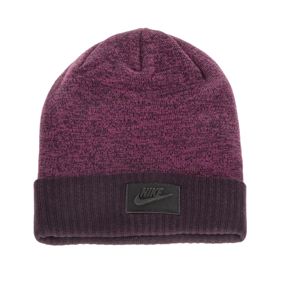 Γυναικείος σκούφος σε κόκκινο-μπορντό χρώμα, κλασικό στιλ και λεπτομέρεια μπροστά με το λογότυπο του οίκου.