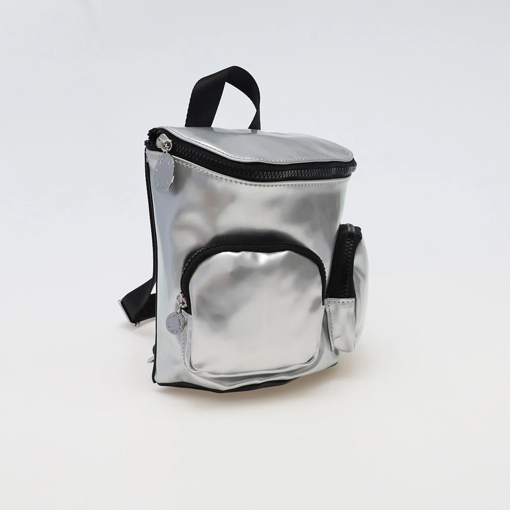 Γυναικείο σακίδιο πλάτης Kendall + Kylie σε ασημί χρώμα. Διαθέτει χειρολαβή και ρυθμιζόμενους ιμάντες ώμου, κυρίως θήκη και δύο εξωτερικές τσέπες με κλείσιμο φερμουάρ.