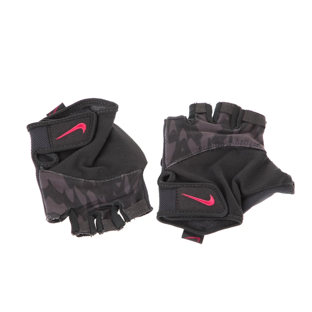Γυναικεία γάντια προπόνησης NIKE μαύρα με γκρι τυπωμένο μοτίβο. Άνω μέρος από λεπτό και ελαφρύ πλέγμα για ευελιξία και δροσερή αίσθηση. Ενίσχυση στις παλάμες από αφρώδες υλικό υψηλής πυκνότητας για μέγιστη άνεση. Κλείνουν με velcro για εξατομικευμένη εφαρμογή.