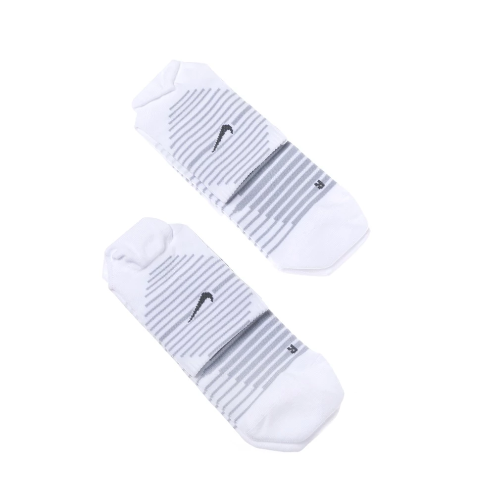 Σετ αθλητικές κάλτσες για τρέξιμο Nike στις αποχρώσεις του άσπρου και του γκρι. Προσφέρουν στεγνή και άνετη αίσθηση, χάρη στο εξαιρετικά ελαφρύ ύφασμα που απομακρύνει τον ιδρώτα και τις επίπεδες ραφές στα δάχτυλα.
