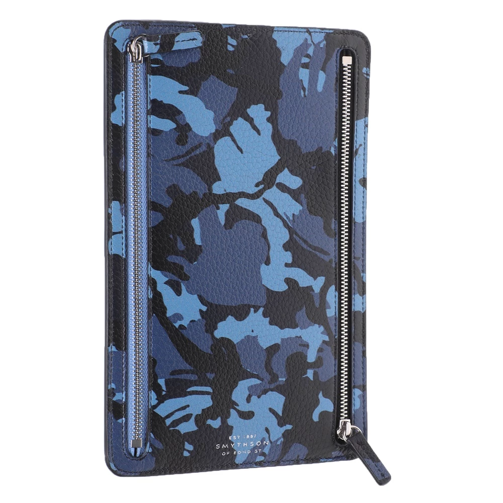 Θήκη για έγγραφα SMYTHSON BURLINGTON σε μπλε απόχρωση με μοτίβο παραλλαγής. Από δέρμα, με τέσσερις θήκες που κλείνουν με φερμουάρ για την καλύτερη οργάνωση των εγγράφων σας.