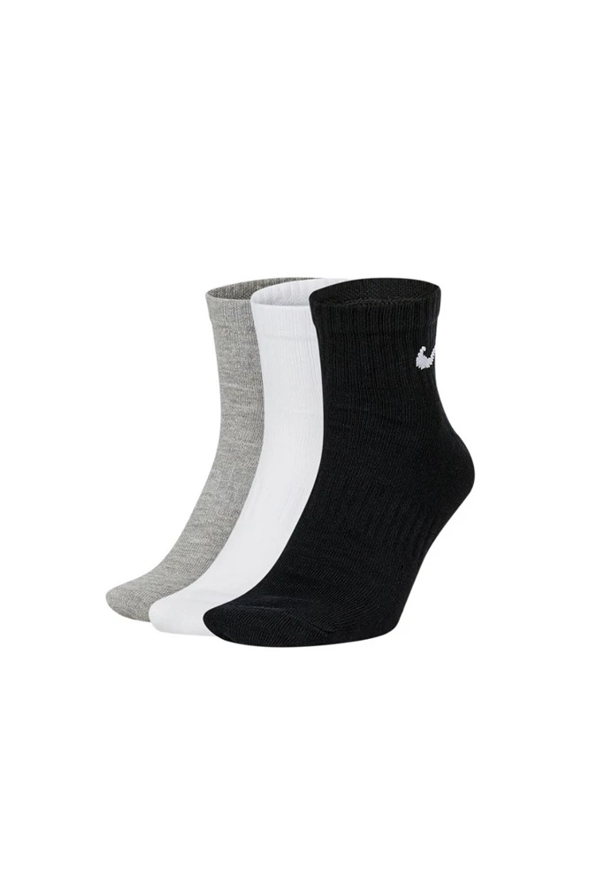 Σετ από 3 ζευγάρια κάλτσες NIKE μαύρες-γκρι-λευκές. Από υψηλής ποιότητας ύφασμα για στεγνή και άνετη αίσθηση στα πόδια. Ριμπ ύφανση και λογότυπο του brand στο πλάι.