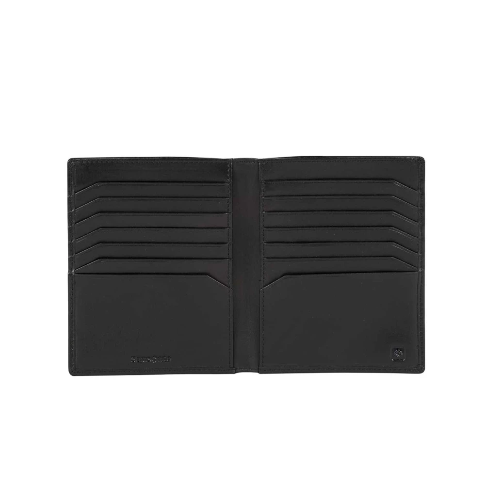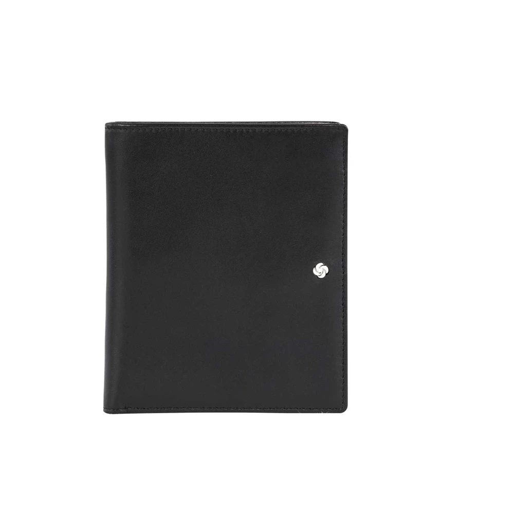 Unisex πορτοφόλι SAMSONITE σε μαύρο χρώμα. Από λείο δέρμα υψηλής ποιότητας με διακριτική μεταλλική λεπτομέρεια το εμπορικό σήμα του brand. Είναι αναδιπλούμενο και διαθέτει μία θέση για χαρτονομίσματα και πολλαπλές θήκες για κάρτες.