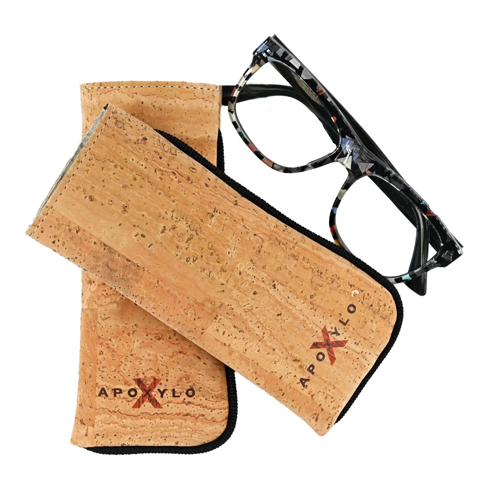 Unisex θήκη γυαλιών APOXYLO από φυσικό φελλό. Άνοιγμα στο επάνω μέρος για εύκολη αποθήκευση.